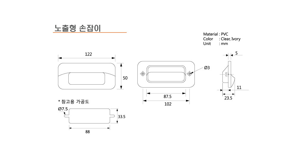 노출형 손잡이 목록 본문 > < ----노출형 손잡이 치수표 노출형 손잡이 e-mail : phone : body : SPEC SPEC| ----노출형 손잡이 치수표 수량 개 RELATED PRODUCT 보내기 취소 목록