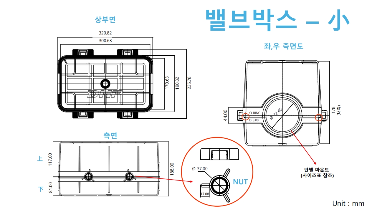 VALVE BOX(밸브박스)- 大,小 목록 본문 > < ----밸브박스 치수표-大----밸브박스 치수표-小---- 판넬마운트 치수표 VALVE BOX(밸브박스)- 大,小 e-mail : phone : body : SPEC SPEC| ----밸브박스 치수표-大 수량 개 SPEC| ----밸브박스 치수표-小 수량 개 SPEC| ---- 판넬마운트 치수표 수량 개 RELATED PRODUCT 보내기 취소 목록