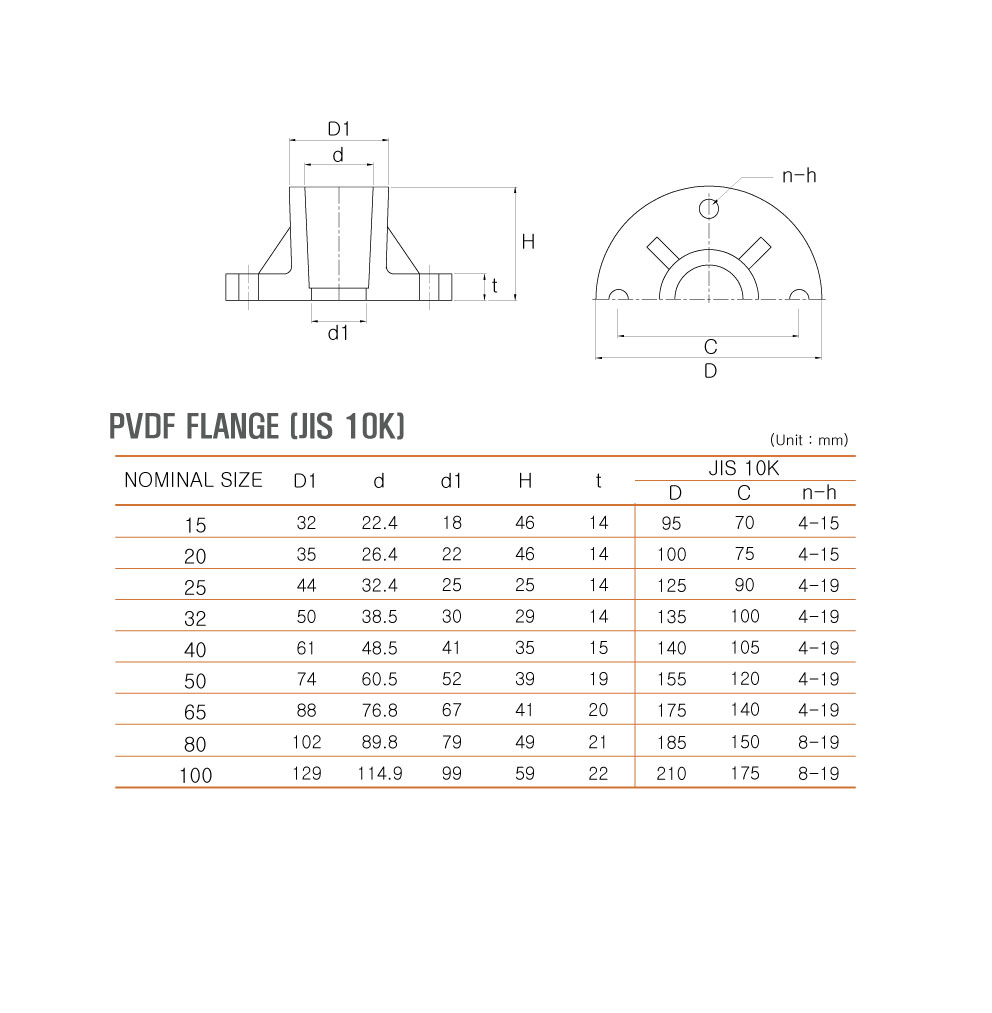 PVDF FLANGE 목록 본문 > < ----PVDF 후렌지 치수표 PVDF FLANGE e-mail : phone : body : SPEC SPEC| ----PVDF 후렌지 치수표 수량 개 RELATED PRODUCT 보내기 취소 목록