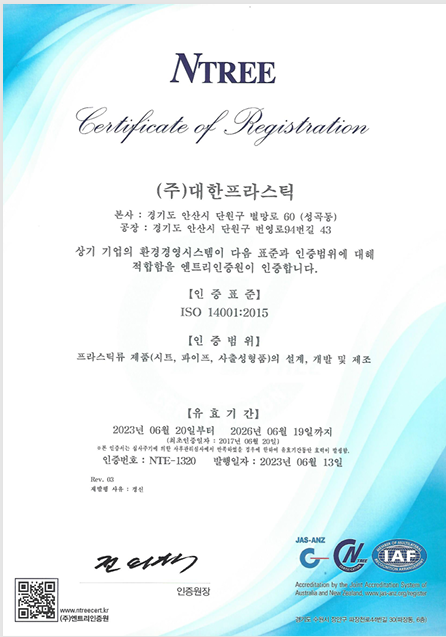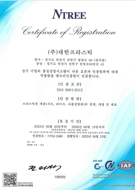 경기도 안산시 단원구 별망로 60 (시화공단 4바 301-2, 성곡동 718-13) | ㈜대한프라스틱 | 대표자 : 한기영